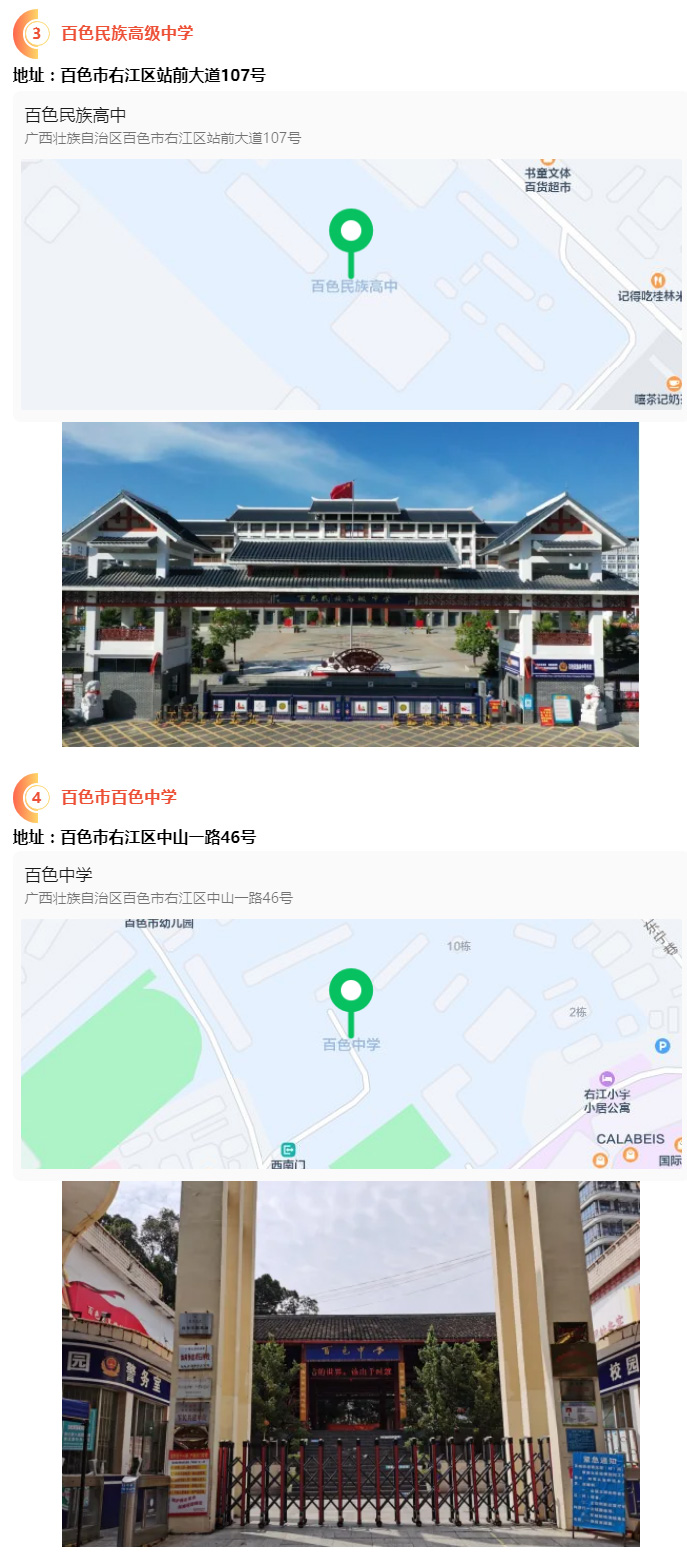 2.請(qǐng)?zhí)崆笆煜た键c(diǎn)地址,做好路線、住宿的安排。本次考試參考人數(shù)較多,考點(diǎn)分布分散,建議考生考前實(shí)地察看考點(diǎn),確認(rèn)考點(diǎn)入口位置,防止走錯(cuò)考點(diǎn)。請(qǐng)充分考慮考點(diǎn)周邊交通通行情況和停車(chē)場(chǎng)地容量,合理安排出行方式,預(yù)留充足時(shí)間,確??荚嚠?dāng)天按時(shí)到達(dá)。另外,考試期間百色市及各考點(diǎn)學(xué)校周邊的住宿比較緊張,請(qǐng)?zhí)崆邦A(yù)定。