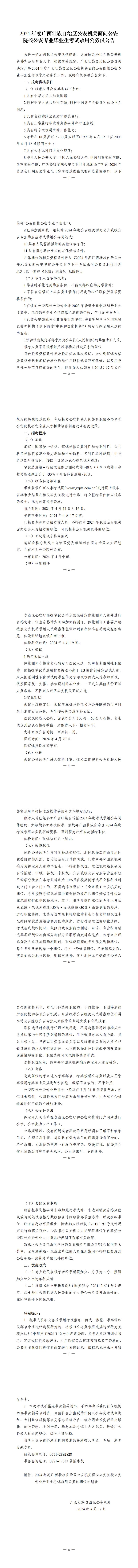 原文標(biāo)題:2024年度廣西壯族自治區(qū)公安機(jī)關(guān)面向公安院校公安專業(yè)畢業(yè)生考試錄用公務(wù)員公告