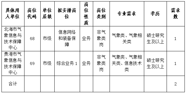 根據(jù)《氣象部門(mén)事業(yè)單位公開(kāi)招聘人員管理辦法》《廣西氣象部門(mén)2025年度事業(yè)單位公開(kāi)招聘工作方案》有關(guān)要求,廣西氣象部門(mén)增加招聘2025年應(yīng)屆畢業(yè)生筆試崗位(即非氣象類(lèi)崗位)2個(gè)。具體事項(xiàng)公告如下: