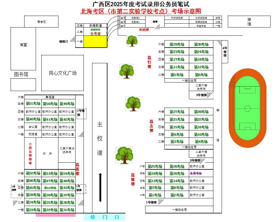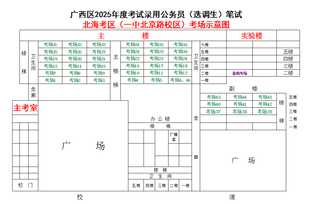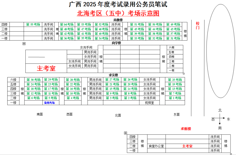 北海考區(qū)共設(shè)置5個(gè)考點(diǎn),具體考點(diǎn)考場(chǎng)布置分別如下: