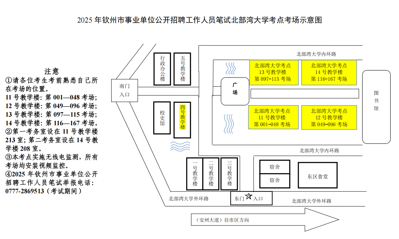 (二)請考生按照本人準考證上的考點學(xué)校,提前了解學(xué)校所在位置,特別注意不要混淆北部灣大學(xué)考點與北部灣職業(yè)技術(shù)學(xué)??键c。部分考點學(xué)校離市區(qū)有一定距離,請關(guān)注當(dāng)天交通情況和天氣情況,充分考慮路途時間和天氣因素影響,提前謀劃出行時間、路線和交通工具,建議提前60分鐘到達考點,以免影響正常入場參加考試。
