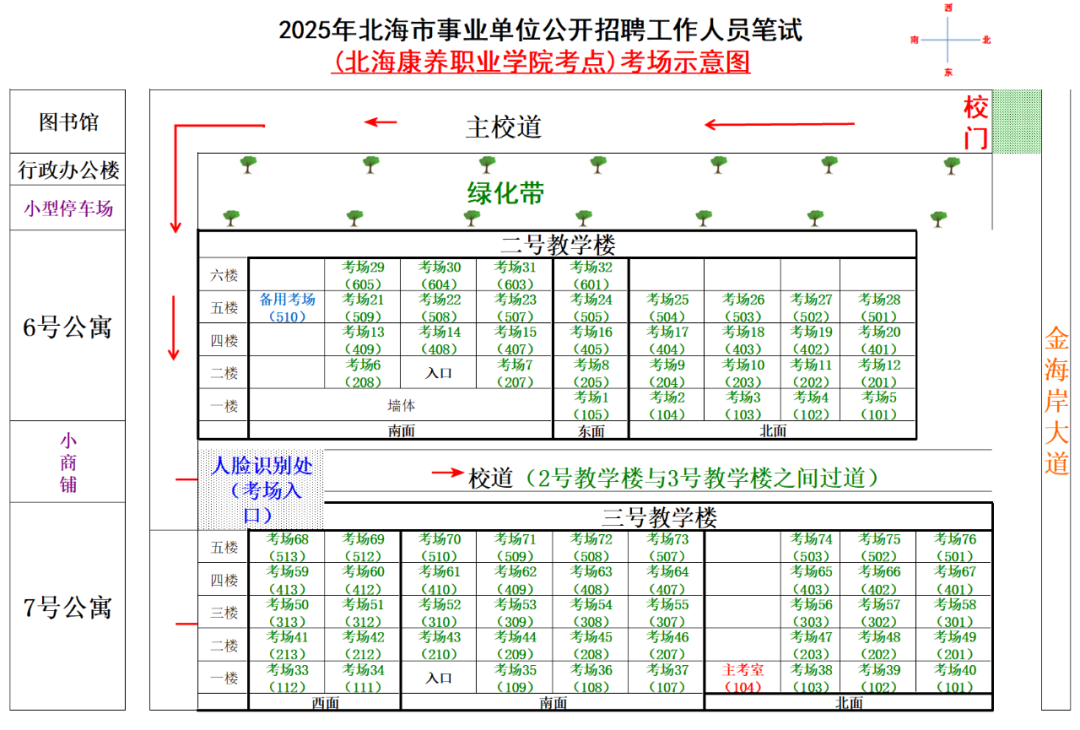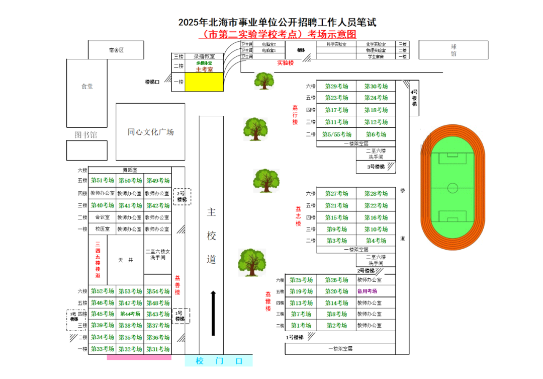 本次筆試北海市共設(shè)十個考點,考點考場布置分別為: