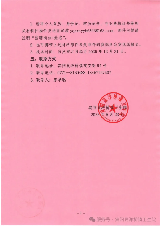 2025年廣西賓陽縣洋橋鎮(zhèn)衛(wèi)生院招聘3人