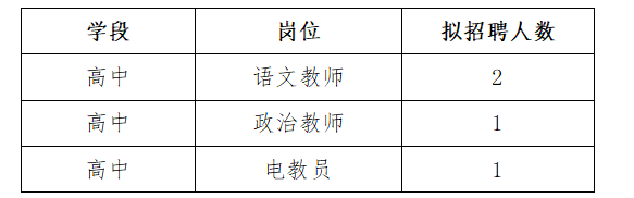 結(jié)合我校教育教學(xué)工作實(shí)際,經(jīng)研究,現(xiàn)面向社會(huì)公開招聘3名學(xué)科教師和1名電教員,有關(guān)事項(xiàng)公告如下: