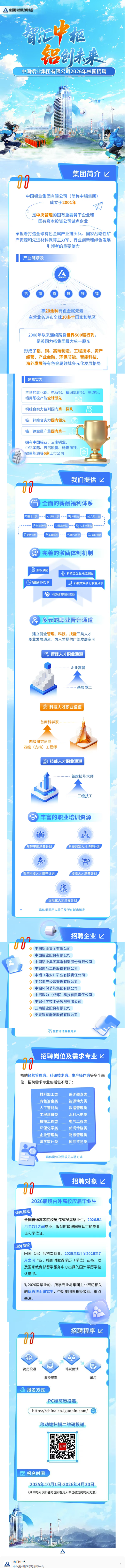 原文標(biāo)題:中國鋁業(yè)集團(tuán)有限公司2026年校園招聘正式啟動!