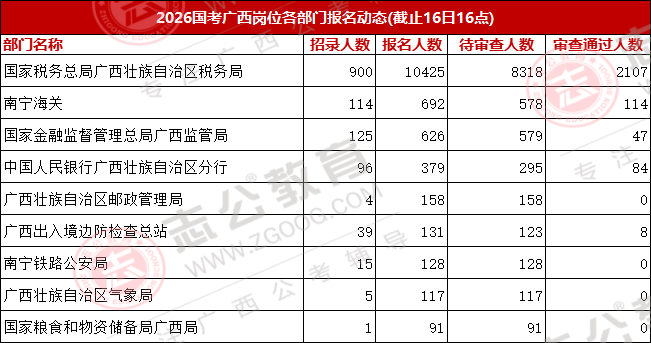 今天是報名第二天,小伙伴可要抓住此次上/岸機(jī)會啦!來看看廣西今天的報名數(shù)據(jù)吧。截止10月16日下午16:00,已經(jīng)有13116名考生報名,最熱崗220人報名!從各項數(shù)據(jù)來看,部分考生可能還持觀望態(tài)度。在接下來的報名時間里,可能會迎來報名人數(shù)大幅增長的情況,大家可以密切關(guān)注。