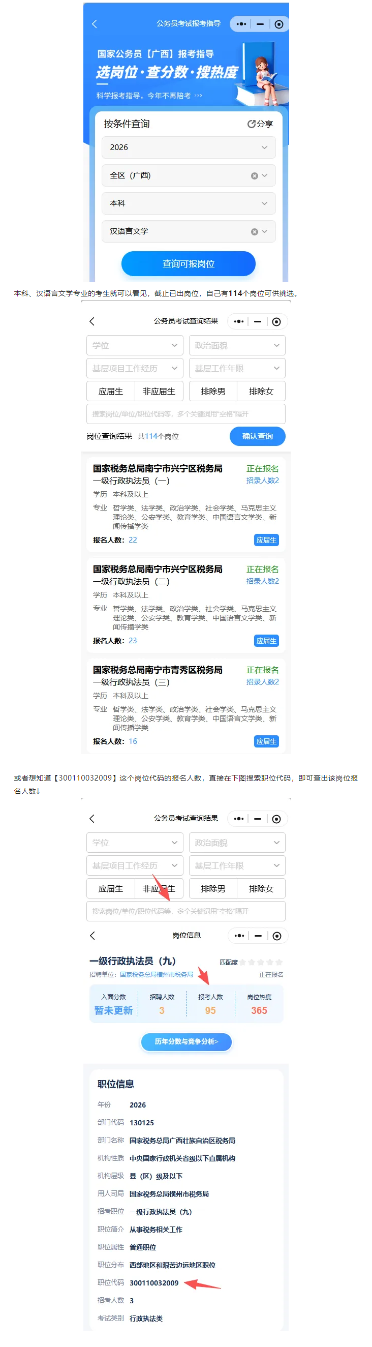 更多崗位報名詳細(xì)內(nèi)容請使用公考天眼查詢,在這里,你能清晰查看各個崗位的官方報考人數(shù)、本系統(tǒng)崗位熱度,崗位報名條件,入面分?jǐn)?shù)和錄取分?jǐn)?shù),這些數(shù)據(jù)都是經(jīng)過精準(zhǔn)整理與分析的,能為你的選崗提供有力參考。