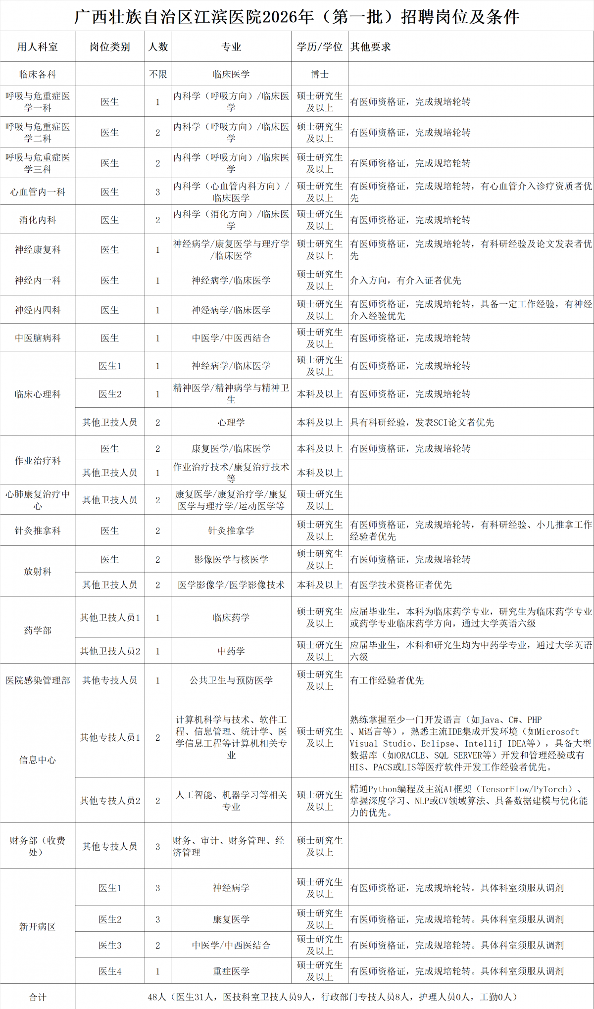 1.《廣西壯族自治區(qū)江濱醫(yī)院招聘報(bào)名表》;