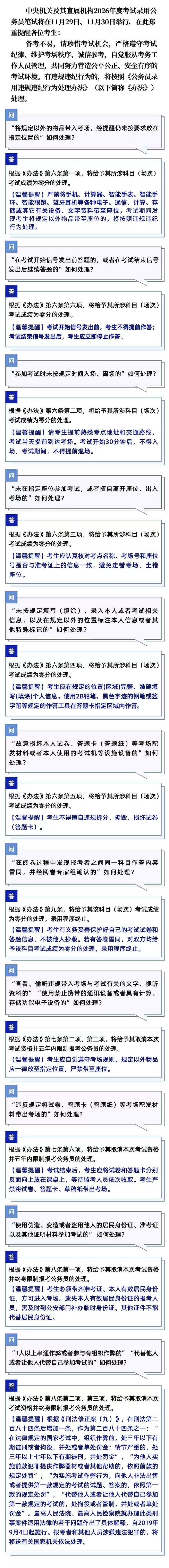 中央機關(guān)及其直屬機構(gòu)2026年度考試錄用公務(wù)員筆試有關(guān)違規(guī)違紀(jì)行為處理溫馨提醒