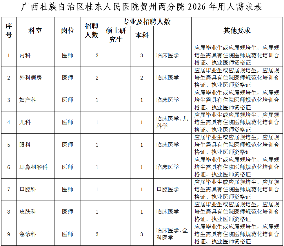原文標(biāo)題:2026年廣西壯族自治區(qū)桂東人民醫(yī)院賀州兩分院人才招聘公告