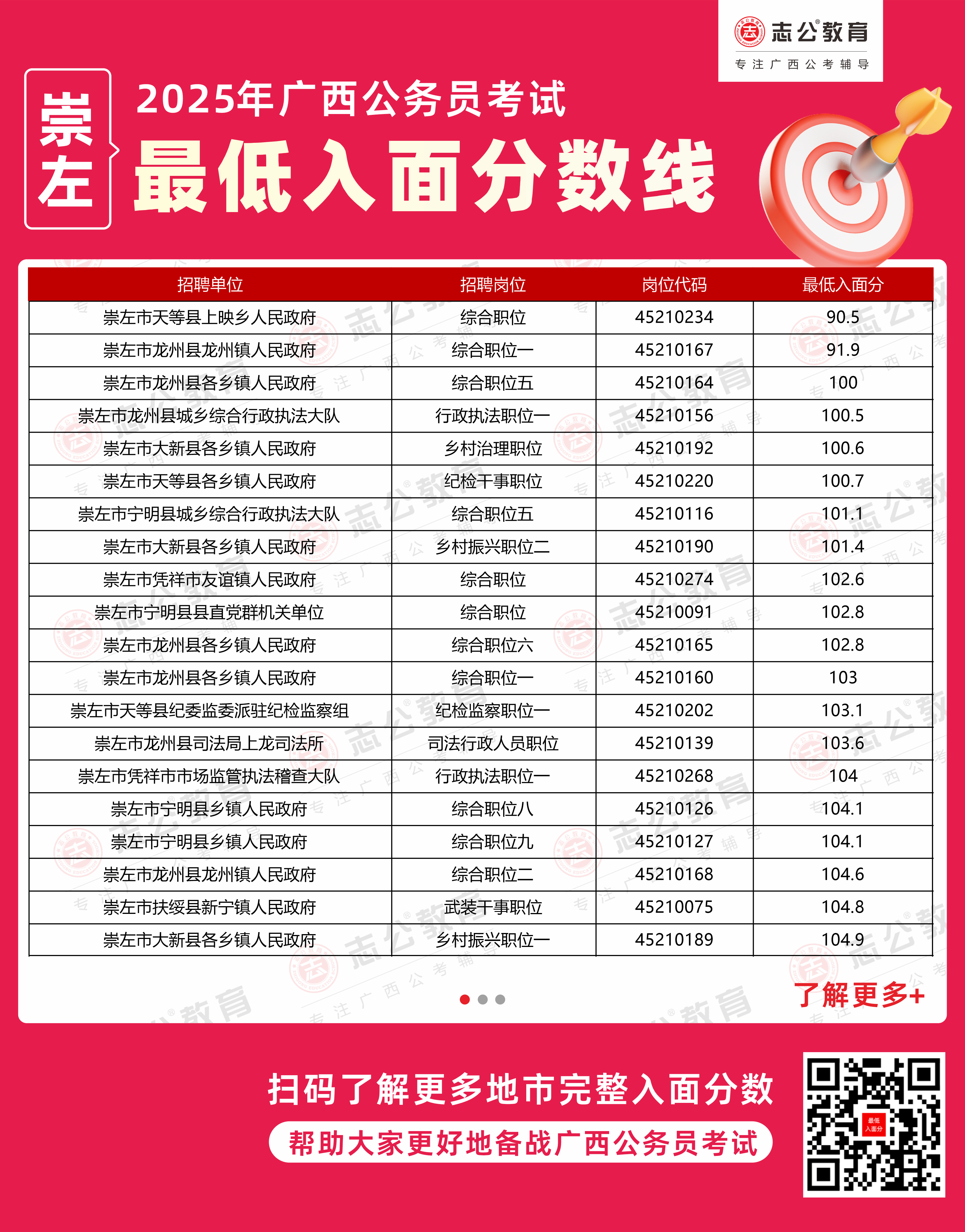 (點(diǎn)擊下載更多2025年崇左公務(wù)員最低入面分?jǐn)?shù),數(shù)據(jù)整理自官方發(fā)布的面試資格審查公告)